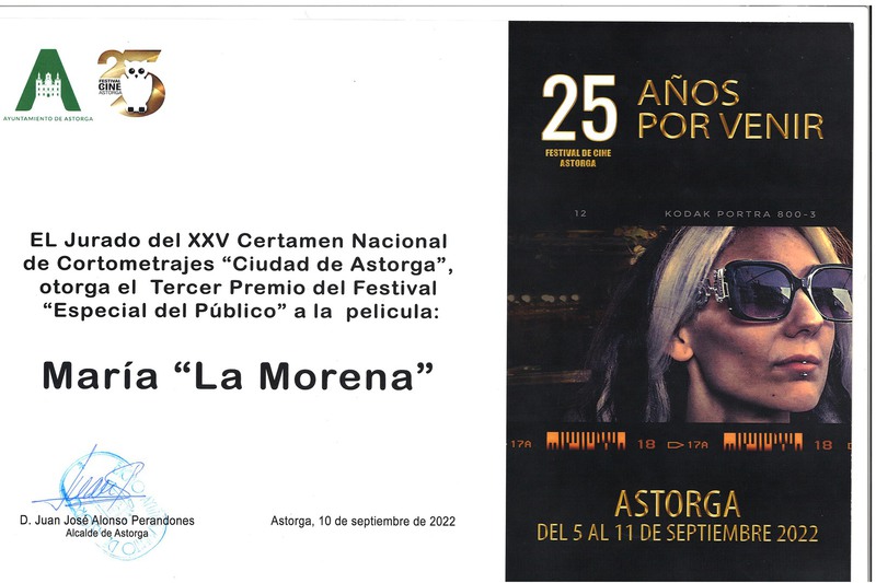 FESTIVAL DE CINE 2022 PREMIO AL MEJOR DOCUMENTAL "MARÍA LA MORENA"